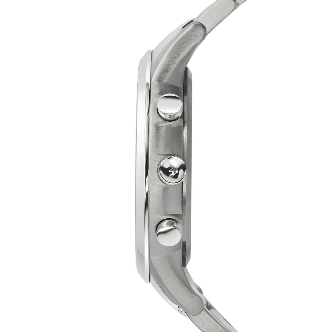 L'Emporio Armani AR2486 impose sa prestance avec un cadran noir texturé rehaussé de trois compteurs fonctionnels et d'index dorés lumineux. Son boîtier en acier poli et son bracelet aux maillons sculptés reflètent la lumière avec élégance masculine. Cette montre chronographe allie performance horlogère et sophistication italienne, s'affirmant comme l'accessoire indispensable de l'homme moderne qui ne transige jamais avec le style.
