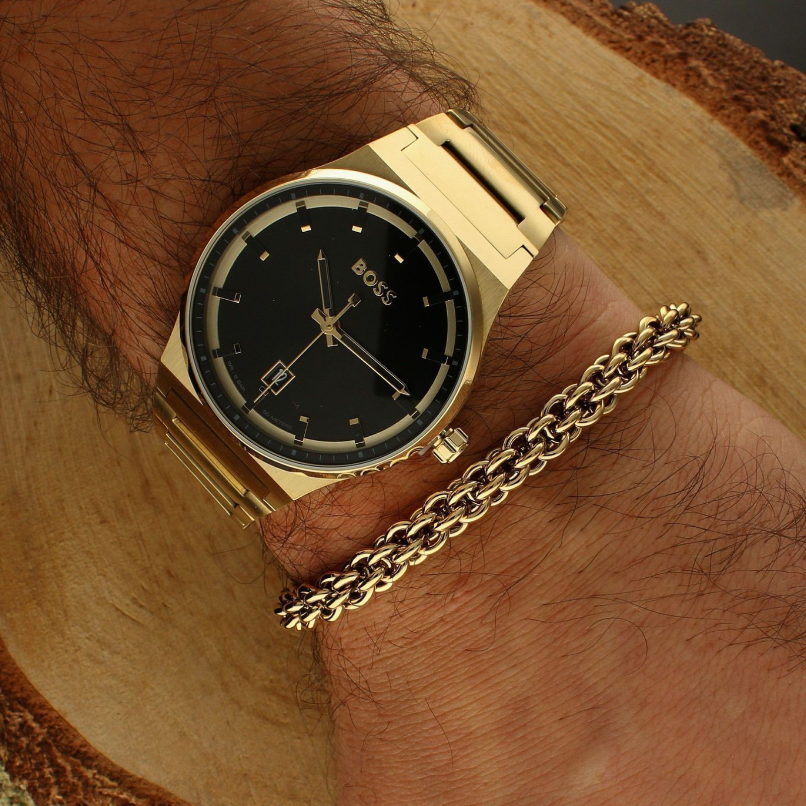 La Candor 1514077 de Hugo Boss incarne le minimalisme de luxe dans une version dorée saisissante. Son boîtier en acier inoxydable doré abrite un cadran noir profond aux finitions épurées, offrant une lisibilité parfaite et un style affirmé. Le bracelet en métal ton or, parfaitement intégré au boîtier, renforce son allure sophistiquée et contemporaine. Résistante à 50 mètres, elle allie élégance urbaine et fonctionnalité quotidienne pour l’homme qui aime se distinguer avec subtilité.